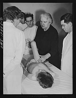 Sister Kenny conducting a class for doctors and nurses at the Elizabeth Kenny Institute, Courtesy of Library of Congress